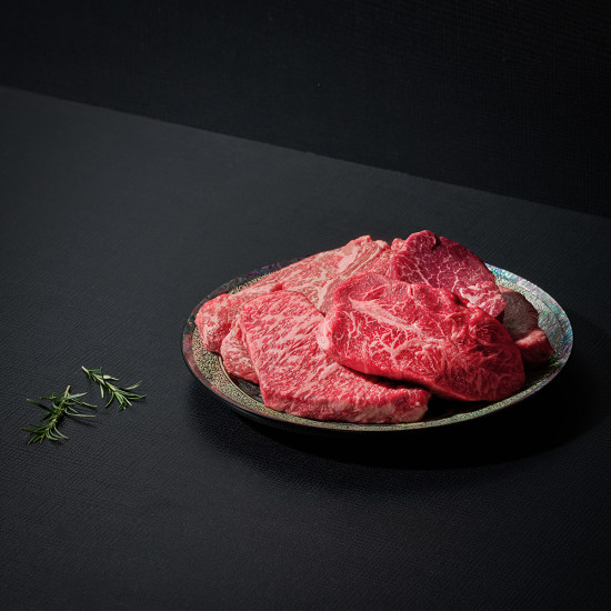 • 한우 1++ No.9 스테이크 600g (등심300g+부채300g)