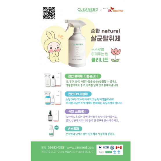 천연살균탈취제(일라이트, 타닌산, 구연산나트륨, 파동수 외 사용)