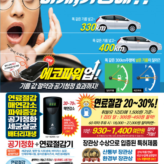 연료절감,매연감소 파워증강,배터리재생,공기정화,세균살균,담배연기,찌든냄새탈취 기능