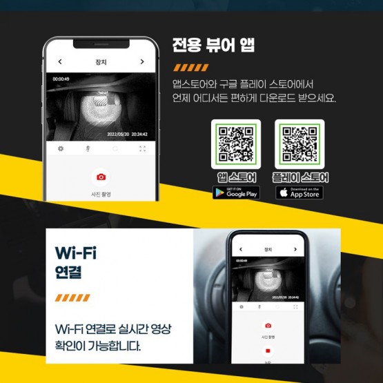 1. 블랙박스의 명가 "다본다" 가 새롭게 시작하는 "NEW DABONDA" 의 첫 제품입니다. 2. 급발진 사고를 대비하여 입증할 수 있는 영상을 녹화할 수 있습니다. - 대한민국 급발진사고 제조사 인정사례 현재까지 '0건' - 실제 유사 사고 발생시, 운전자가 급발진 환경을 즉각적으로 촬영하기 힘든 상황을 대비. 3. 기존에 장착된 블랙박스 제품을 교체할 필요없이 추가로 구매 사용하는 제품입니다. 4. 장착방법이 간단하여 전문가의 도움이 없이 소비자 누구나 편하게 장착이 가능합니다. 5. 와이파이 연결을 통하여 휴대전화로 실시간 영상확인이 가능할 뿐만 아니라 수동녹화 기능이 있습니다. 6. 페달카메라의 경우 IR센서가 부착되어 빛이 없는 야간환경에서도 선명한 페달부분 촬영이 가능합니다. 7. 차량시동후 퀵부팅 기능이 활성화되어 즉시 촬영이 가능합니다. 8. 메모리카드 삽입구 커버가 있어 사고 시 메모리카드 분실을 예방합니다. 9. 128기가까지 메모리카드 용량을 지원합니다. |